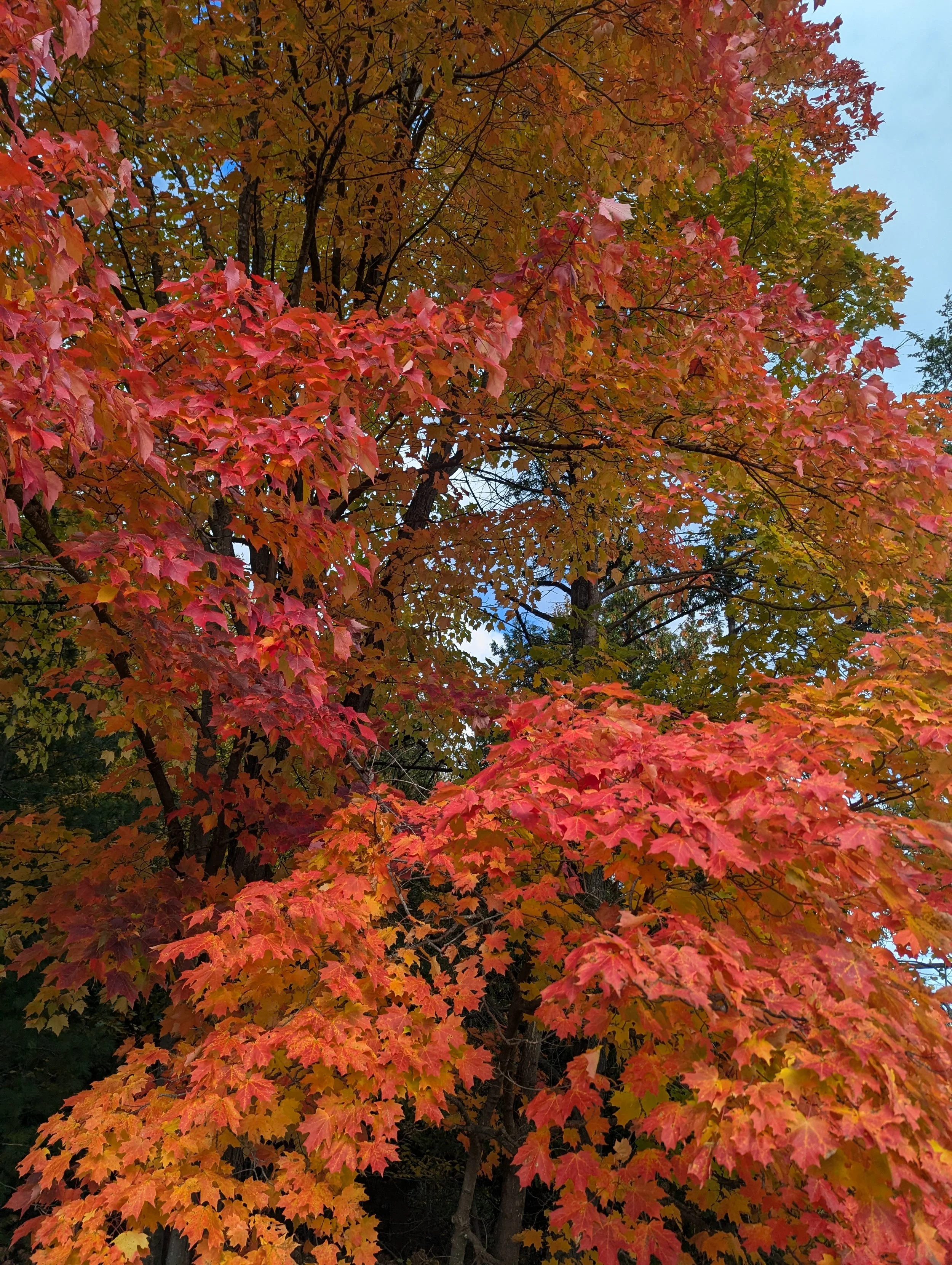We made our way down a big set of stairs and discovered the trees looked different here! We learned about Hemlock trees and their soft needles with a white line on the back. We also learned about super smooth Beech trees and all stopped to feel their bark! At last, we reached Mini Mac (our mini suspension bridge) and took a mindful moment to engage our senses and tune into the nature around us. We saw all colors of trees changing, heard wind blowing through the leaves, felt the sun warm our faces and smelled clean, fresh air! We couldn’t help but marvel at the Sugar maple sharing the space with us and learned that the pretty, red leaf trees are the ones we get our maple syrup from!