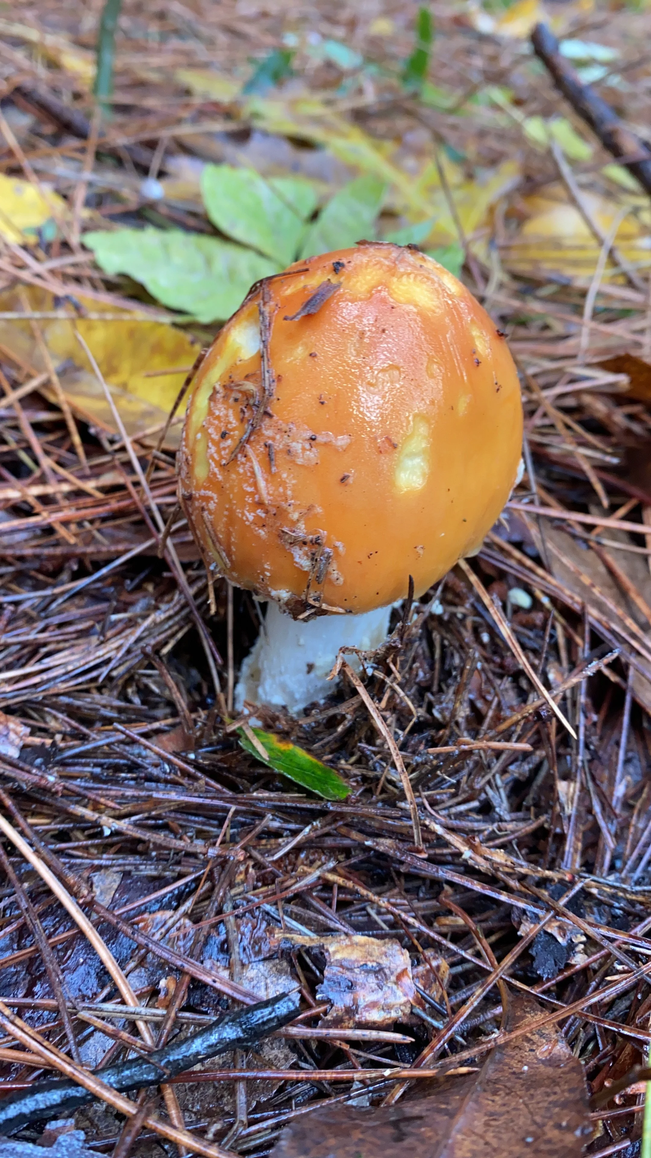 We saw snow this morning! We spent a little time inside the Nature Center learning about the animals along the walls. We got to feel the feathers of hawks, an owl, a duck, and a loon. We also looked at the otter’s webbed feet and beaver’s teeth and found a woodpecker high up on a branch. Outside the pavilion, we found woodpecker holes in the trees! After snack, we kept warm at the pavilion putting together a puzzle and coloring. Then, we set off on Sabin Trail to look for mushrooms. We found at least eight different kinds. Big, small, tiny, white, brown, black, purple, orange, yellow–we had a wonderful time comparing them all. Ms. Paige used her phone to identify some of them–the app Seek by iNaturalist is incredibly helpful when we do not know what something is on the trail. Some mushrooms were bigger than Ms. Paige’s and Ms. Rachel’s hands! These were called sweetbread mushrooms. Some of the smaller mushrooms reminded us of pancakes, so we are calling them pancake mushrooms from now on! These are false chanterelles. We also learned to wipe our shoes off on the boot brush at the trailhead to avoid spreading seeds when we hike on other trails.